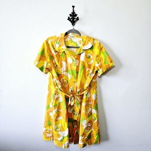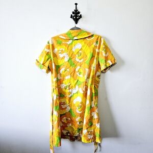 Vintage 60s Mod Floral Retro Print Mini Dress Size M/L Groovy Tunic EUC