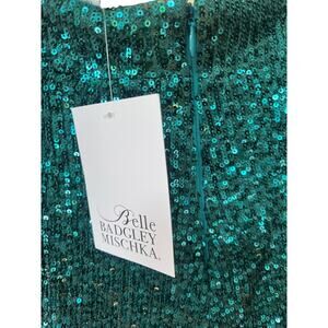 $398 Belle Badgley Mischka Sequin 2pc Suit Ivanna Wrap Top & Iris Pant Sz2 Green