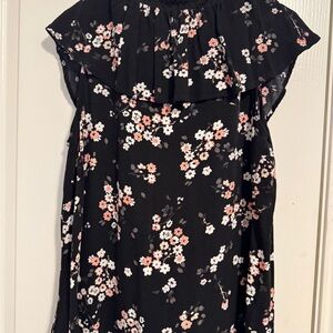 Torrid Black and Pink Flutter Sleeve Blouse