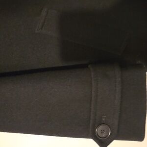 Elevate your wardrobe with this timeless black wool coat. Absolute classic that every woman should own. 100% wool and made in the USA! Large front pockets and fully lined. Has lightly padded shoulders. I would also say it's a bit oversized, a 10 or even a 12 could wear this. 21 inches across the bust and approximately 36 inches long. Perfect condition, like new. M1