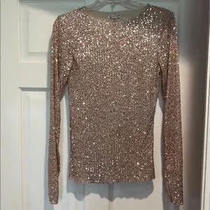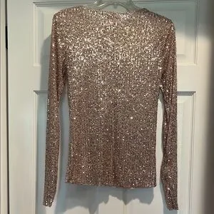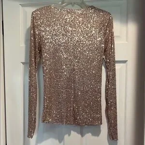Shine bright with this stunning sequin long sleeve top. Perfect for any occasion, this pink/rose gold top adds a touch of glamour to your wardrobe.