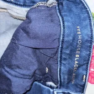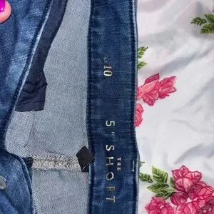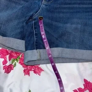 These blue jean shorts from White House Black Market boast a classic cuffed hem and a medium-dark wash, providing a timeless and casual appeal. The sturdy denim material features natural fading, offering a comfortable, worn-in look. Ideal for everyday wear, these shorts are a versatile wardrobe staple.