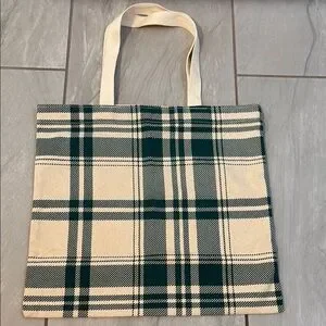 NWOT Old Navy Plaid Tote Bag in Green and Cream