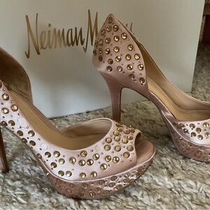 This exquisite Jovani dress showcases a rich gold/beige color and a sophisticated trumpet silhouette, ideal for a mother of the bride wedding guest or an elegant night out. The maxi length is adorned with intricate embellishments, adding a touch of elegance and luxury to any special occasion. The detailed craftsmanship ensures a stunning and memorable appearance. Shoes, purse and necklace included if you want it.😊 The dress is Brand New never been worn. Received it on Friday May 9th. Of this year. I need a size up. Also it’s more on the gold side.😊( These Dresses Run About A Size Smaller! )