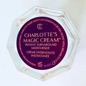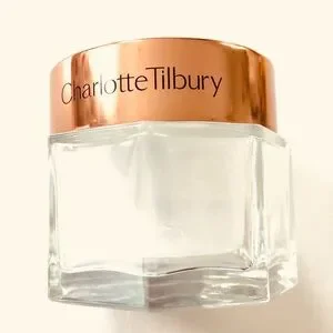 Luxurious Charlotte Tilbury magic cream jar. Octagon shaped glass cream jar.