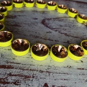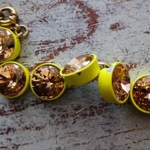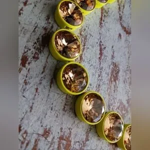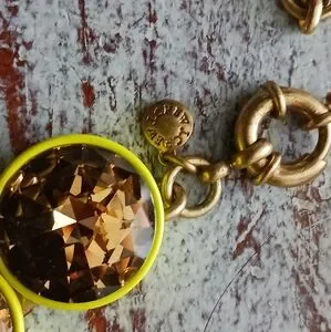Vintage J. Crew Chain Bezel Citrine Brulee ,neon Green , Rhinestones Necklace