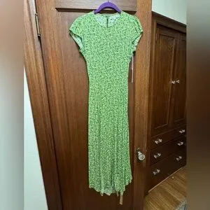 Charming green dress with a delicate white floral pattern. Perfect for any occasion.