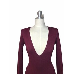 Lulus Bodycon Dress Mini Short Size XS Burgundy Long Sleeve Knit Deep V-Neck