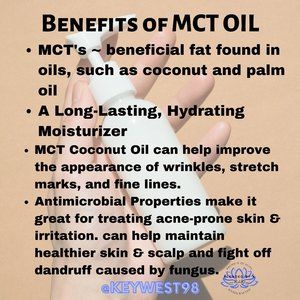 Creamy, long-lasting & hydrating moisturizer. Made with Coconut Oil, Vitamin E, Aloe Vera Leaf Juice, Glycerin, Allantoin, Panthenol & Premium Essential Oils. Be sure to read the benefits of MCT Oil photo.