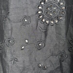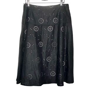 NWT black (with blush full lining peeking out from eyelet design), size 14 women's Saint Tropez WesT 100% cotton midi-skirt.