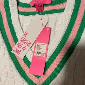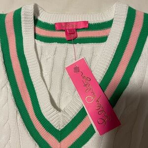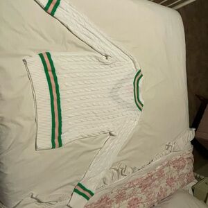 Lilly Pulitzer White Cable Knit Sweater with Green and Pink Accents