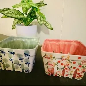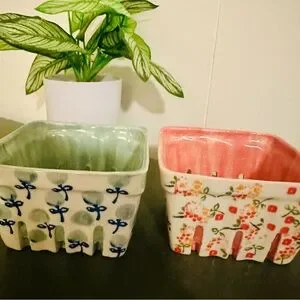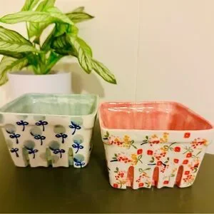 NEW Anthropologie Floral Ceramic Berry Baskets 2pc Set