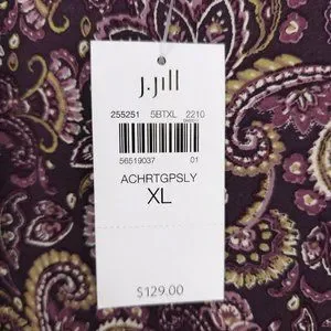 This maxi dress in XL, by J. Jill features a charming pink and purple color palette with a scoop neckline and long sleeves. Its flowing silhouette and delicate print make it perfect for both casual and dressy outings.