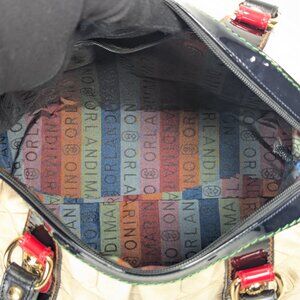 MARINO ORLANDI Cream Croc Embossed Leather Large Bag