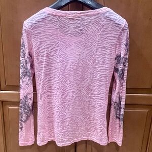 Pink Long Sleeve Cross PulloverTop sz M see measurements