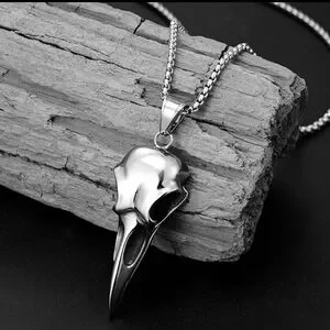 Raven Skull Necklace Stainless Steel Goth Grunge Punk