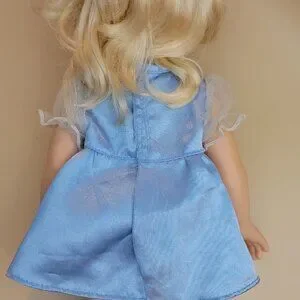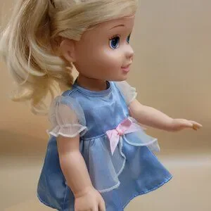This Disney My First Princess toddler doll is a 14-inch tall ball jointed doll with blonde hair and blue eyes. The doll is made of plastic and comes with a set that includes only itself. It is a girl doll and is not personalized. The doll is inspired by the character Cinderella.