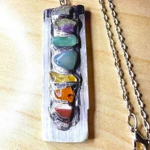 Chakra Gemstone Selenite Pendant Necklace