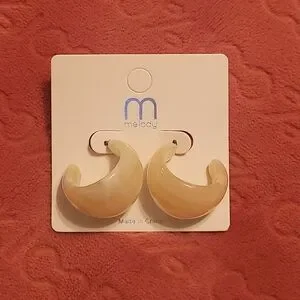 Stylish cream huggie hoop earrings by Melody. Perfect for any occasion.