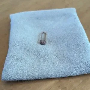14k gold with .26c natural pink sapphire. Dimensions: 20 x 6.5mm