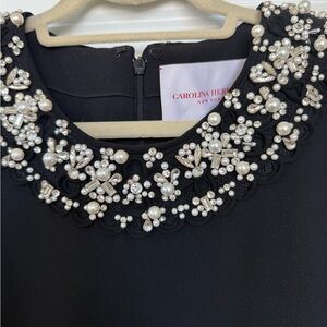 This elegant black dress features a stunning embellished neckline, perfect for any special occasion. The classic design offers a timeless look that is both sophisticated and stylish.