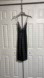 Polyester lace top with satin skirt black lace slip dress. Adjustable straps. Approximate Measurements Laying flat: pit to pit 14” - shoulder to hem 39”- sleeves adjustable straps. Preowned like new condition please check all pictures.