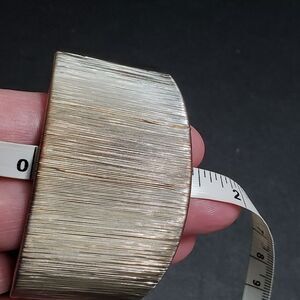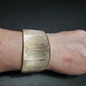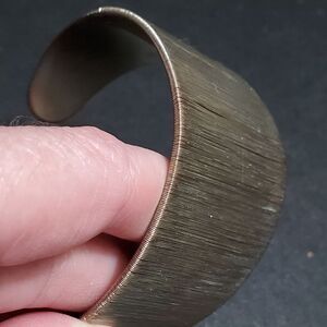 Gorgeous bracelet looks like wire wound and soldered to make a bracelet. It is cuff style and has some bend to it so it can be adjusted to fit.