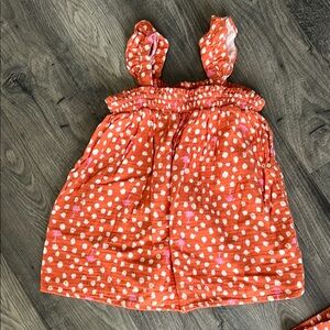 Cute orange top and shorts set with white polka dots. Perfect for a playful look. Girls size 10/12
