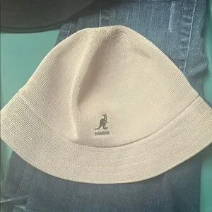 Classic Kangol bucket hat in light tan. Ideal for everyday wear.