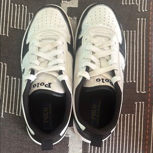 Stylish boys Polo sneakers in black and white. Good used condition. Size 2 little boys.