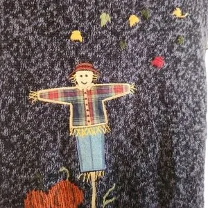This vest is in beautiful condition, no flaws. It has such adorable embellishments- buttons for apples, sheep, scarecrow, and a big red barn. Perfect for the pumpkin patch and farmers markets!