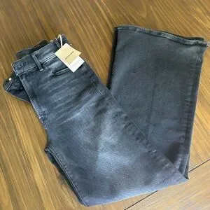 **Denim, decoded: We’re digging denim in every corner of our closet.** With a 70s-inspired wide leg and high rise, the MOTHER The Hustler Roller Sneak jeans offer a flattering fit with stretch denim.