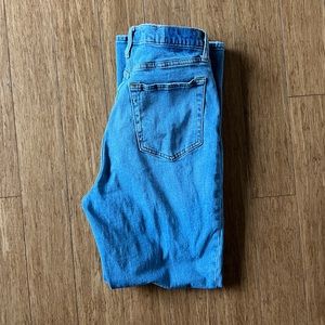Classic straight leg jeans. Light blue denim. Comfortable fit. Perfect for casual wear.