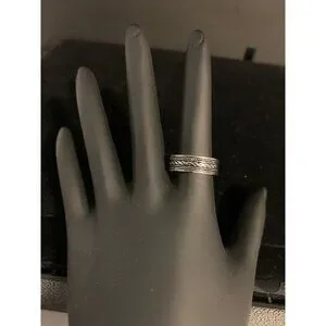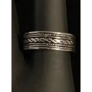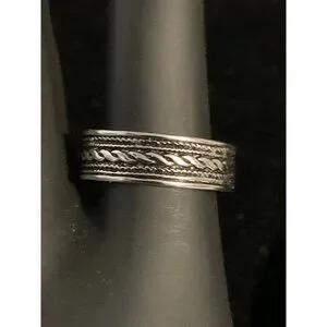 Ornate Silver Tone Band Ring With Braided & Rope Design Signed GR Size 5 (R97)