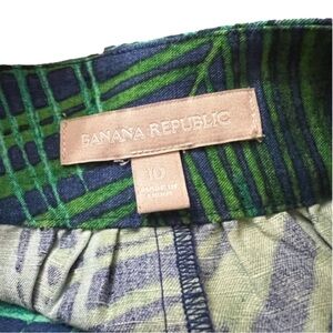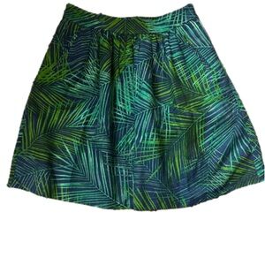 This pleated mini skirt from Banana Republic features a vibrant green and blue pattern, perfect for casual and resort wear. Its skater style and lightweight fabric make it an ideal choice for warm weather outings.