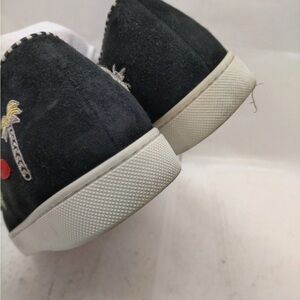 These stylish women slip-on shoes feature vibrant embroidery on a sleek black base. Perfect for adding a playful touch to any outfit.