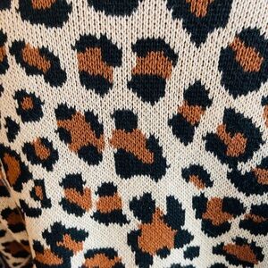 Stay stylish with this chic leopard print button-up cardigan sweater. Featuring a bold black and cream design, this sweater is perfect for any occasion.