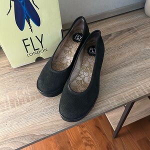 Step out in style with these elegant black shoes from Fly London. Perfect for any occasion, these shoes offer both comfort and sophistication. These are well loved but a lot more life in them!