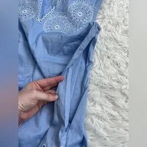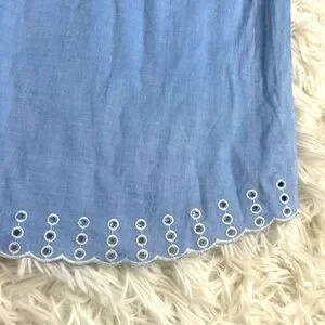 J. Crew Blue White Eyelet Embroidered Sleeveless Chambray Tank - Size 6