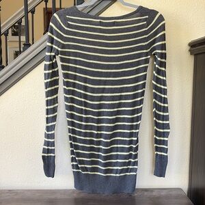 Cozy knit sweater with gray and yellow stripes. Ideal for layering. Old Navy size XS, in great pre owned condition.