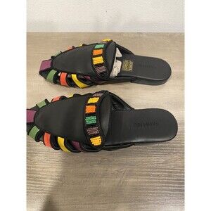 FARM Rio Rainbow Beaded Mule Vegan Tropical Vacation Boho Size 7.5