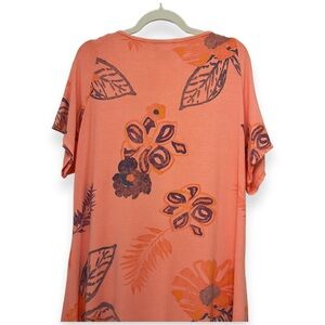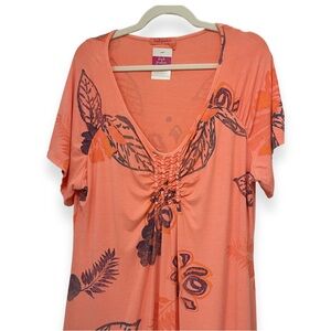 Fresh Produce Short Sleeve Coral V Neck A-Line Floral Emma Dress Sz 1X