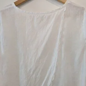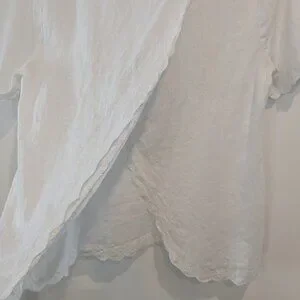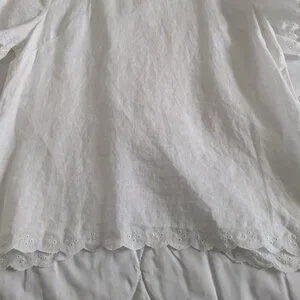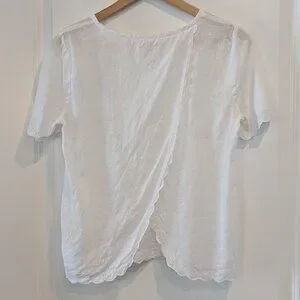J Crew Factory Scalloped Split-Back Top Women's Size 2 White Linen Eyelet Blouse #C4806