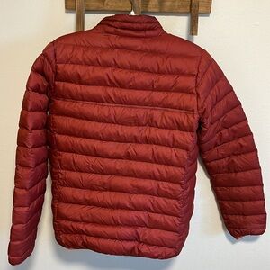 Stylish Patagonia puffer jacket. Features a vibrant red color. Lightweight and warm. Perfect for outdoor adventures. Never ended up wearing it this past winter.