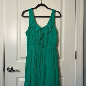 Adorable ruffle above the knee sundress in green. Size large.