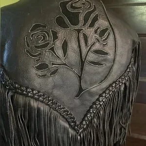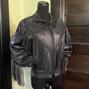 Black Fringe Leather Jacket vintage biker motorcycle jacket