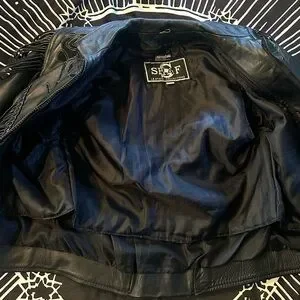 This jacket has a few pinholes from the previous owner. Add your own and head for your heavy metal concert!