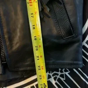 Please, Lord, keep me from trying to buy any more leather jackets online. I desperately want one of these bad ass biker b*+ch jackets for my Goth spring, but I keep striking out with sizing (tiny tiny shoulders). This might be the nicest one I’ve gotten yet! It’s in perfect shape, With gorgeous a fitted waist with corset detailing, black suede Rose appliqués front and back, amazing batwing detail, loads and loads of leather fringe and braid, and a collar that can be worn up moto style or down. Very Tiger King lol. Heavy duty, zippered pockets outside and in, and the lining is in perfect shape. Zip out Thinsulate lining for extra warmth! Smooth supple buttery leather. This would be best suited for a small to extra small women’s. Please see photos for measurements!