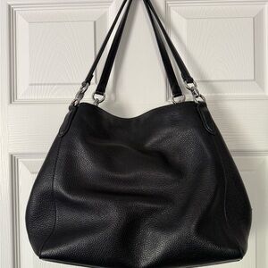 Coach black pebble leather Lexy shoulder bag. In used but excellent condition. I bought this directly from Coach and it has been my daily bag. Lots of life left to it for someone else to enjoy! Rough dimensions are 15x11x4. Happy shopping!