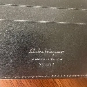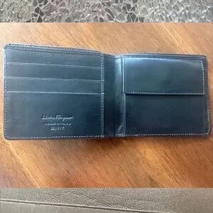 Stylish men's wallet featuring a unique black and brown design. Perfect for everyday use. Salvatore Ferragamo Wallet, in great condition. See photos for closer look at condition!